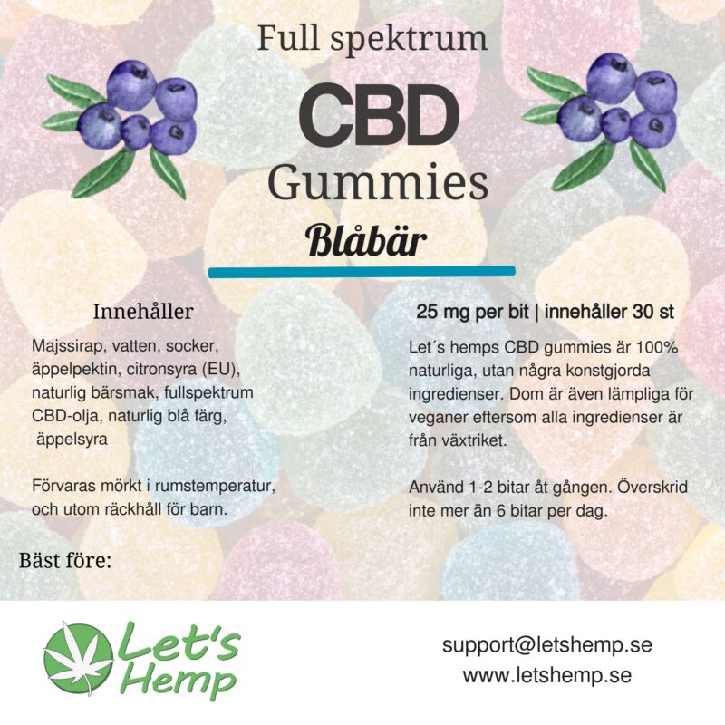- Naturlig Blåbärssmak: Glöm den bittra eftersmaken av traditionella CBD-produkter. Med en läcker ton av blåbär gör varje gelékula din CBD-upplevelse till ett rent nöje.